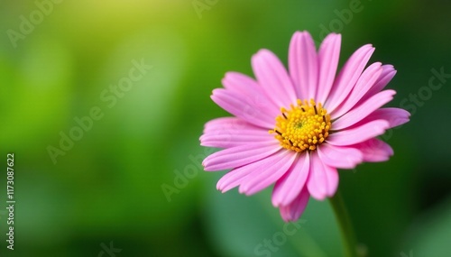 © Sathaporn Buarabut, Obraz premium Delicate pink daisy petal on a green leaf stem, flower, daisies, fresh