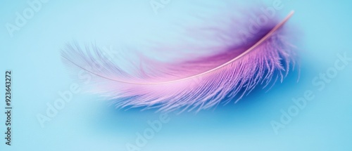 © raja, Obraz premium Delicate Pink Feather on a Light Blue Background