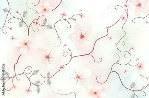 © Taria Technology, Fototapeta premium Delicate Pink Floral Botanical Background