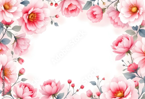 Obraz premium Delicate Pink Floral Frame: Watercolor Romance