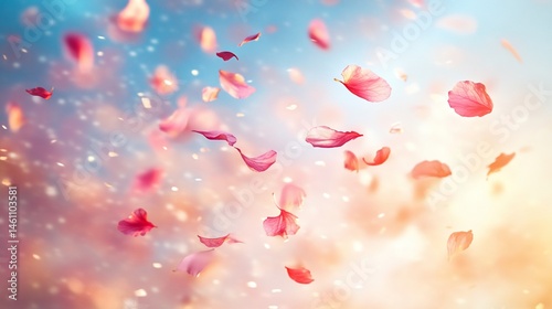 © Gadis, Obraz premium Delicate pink flower petals float in the soft glow of sunlight