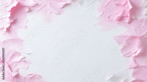 Fototapeta premium Delicate pink flower petals frame a textured white background