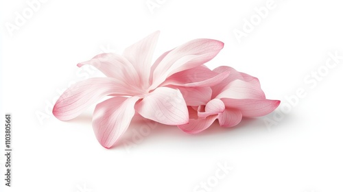 © Hafidz, Fototapeta premium Delicate pink flower petals, gently overlapping, soft light, isolated on white background.