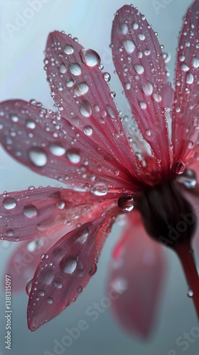 Fototapeta premium Delicate Pink Flower With Raindrops Captured in Soft Focus During Early...