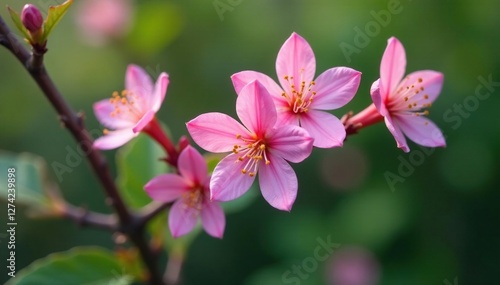 © Withun, Fototapeta premium Delicate pink flowers bloom on a white arachnothryx leucophylla branch, flora, nature