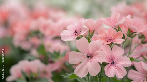 Fototapeta premium Delicate Pink Flowers Blooming in a Garden During Springtime