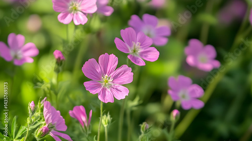 © Ahtesham, Fototapeta premium Delicate pink flowers blooming in soft focus background