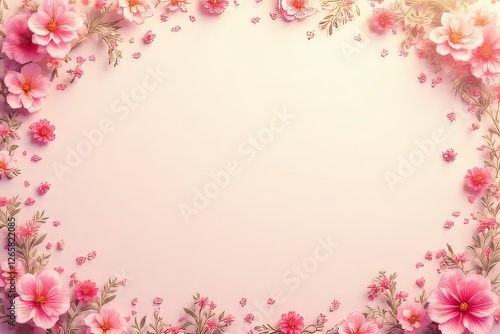 Fototapeta premium Delicate Pink Flowers Frame on Pastel Background