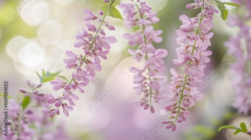 © MD, Obraz premium Delicate Pink Flowers Hanging Branches Soft Bokeh Background