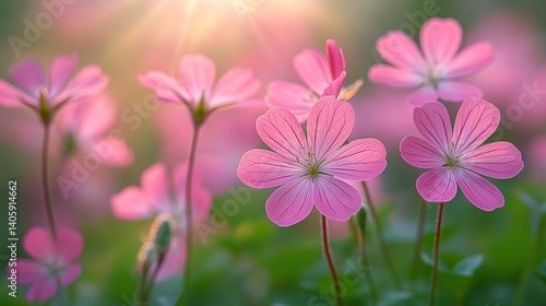 Fototapeta premium Delicate pink flowers in sunlight (1)