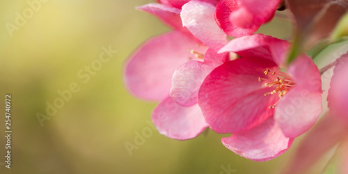 © guppys, Obraz premium delicate pink flowers of sakura on a branch, background