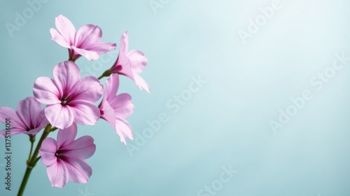 Fototapeta premium Delicate Pink Flowers on a Light Blue Background, Perfect for Spring or...