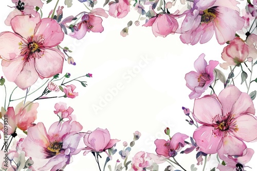 © Ева Поликарпова, Fototapeta premium Delicate pink flowers painted on white background. Perfect for floral designs