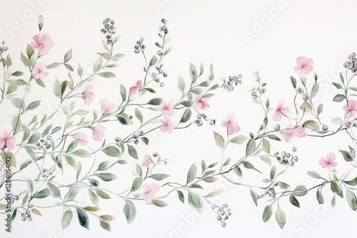 © kucret, Fototapeta premium Delicate pink flowers watercolor painting, wall art