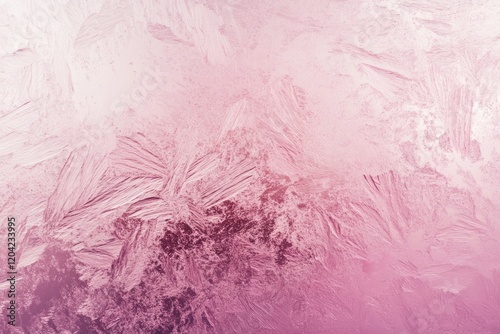 © Textures & Patterns, Obraz premium Delicate pink frost patterns on a windowpane.