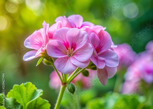 © prapatsorn, Obraz premium Delicate Pink Geranium with Lilac Hues, Natural Green Background - Stock Photo
