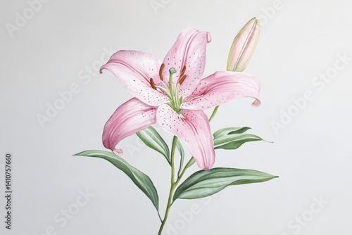 © BabyEyes, Naklejka premium Delicate pink lily, painted in watercolor.