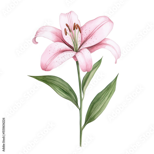 Naklejka premium Delicate Pink Lily Watercolor Botanical Flower Illustration Isolated on a...