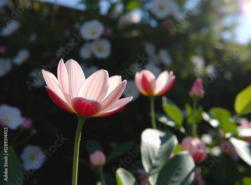 © rfassets, Obraz premium Delicate Pink Lotus Flowers in Bloom with Deep Red Petal Edges