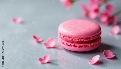 Obraz premium Delicate pink macaron, centered, on matching background , macro, photography, french
