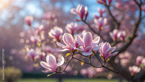 © Dionysius, Fototapeta premium Delicate pink magnolia blossoms in full bloom on a sunny spring day