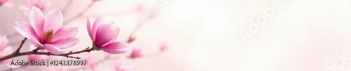 Fototapeta premium Delicate pink magnolia blossoms on bamboo stems, flowers, watercolor, floral