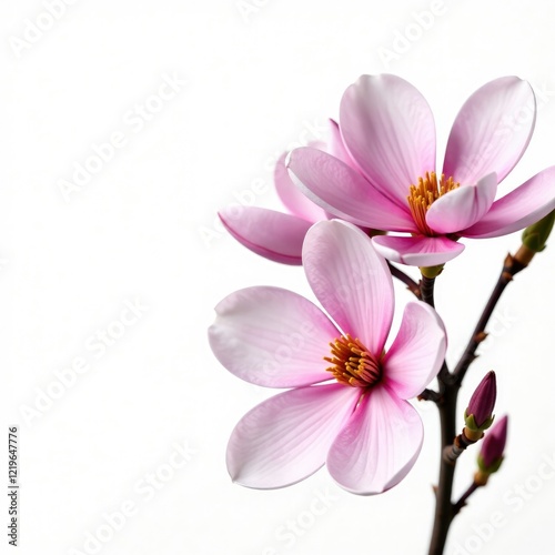 © Janmo, Fototapeta premium Delicate pink magnolia flowers against a pure white background, isolated, delicate, flowers