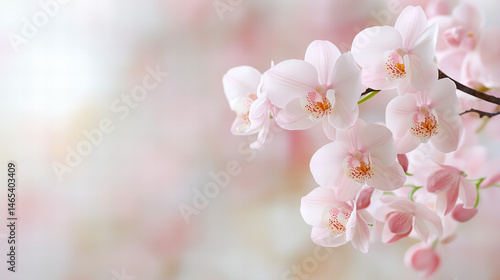 Fototapeta premium Delicate Pink Orchid Blossoms In Soft Focus