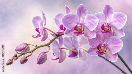 © Rahimun, Obraz premium Delicate Pink Orchid Blossoms with Buds, Serene Beauty