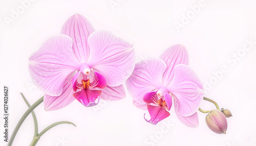 © Ella, Obraz premium Delicate pink orchids blooming on white background, nature's beauty