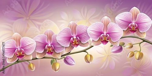 © Yellow Blossom, Fototapeta premium Delicate Pink Orchids on a Soft Floral Background, Orchid, Flower, Bloom