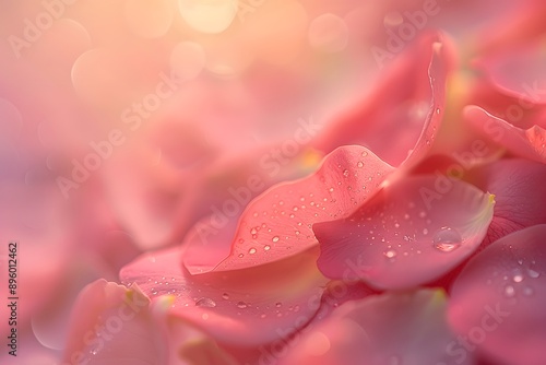 © Valentin, Fototapeta premium Delicate Pink Petals Glimmering with Dewdrops in Soft Light