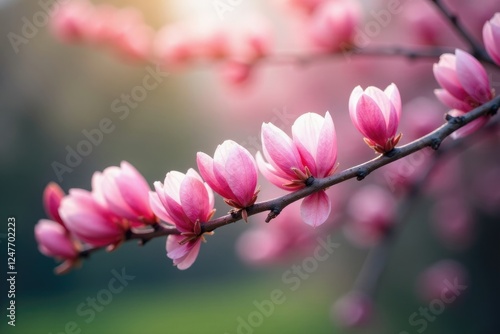 © chaiwat, Obraz premium Delicate pink petals unfold along the tree's branches, landscape, blooming flowers