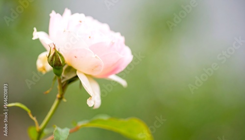 © Mbok, Obraz premium Delicate pink rose in garden setting