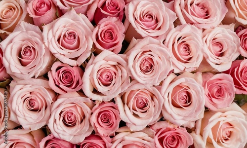 © Valfiyy, Fototapeta premium Delicate Pink Roses Forming a Romantic Tapestry of Floral Beauty