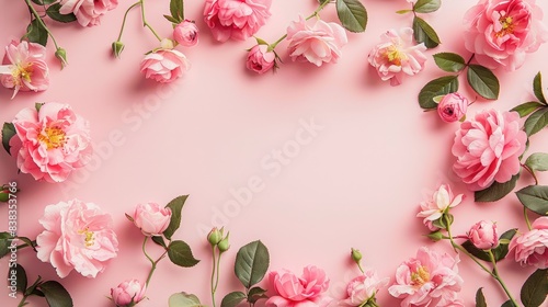 Fototapeta premium Delicate Pink Roses Frame a Pastel Dream