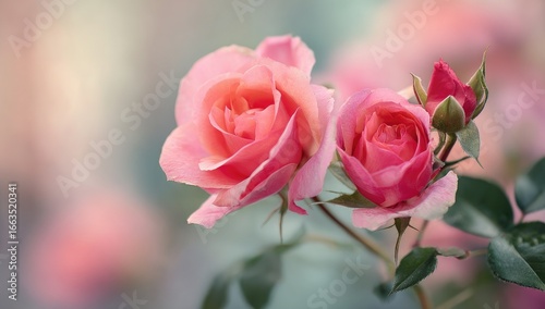 © Syawwal, Obraz premium Delicate pink roses in soft focus (1)