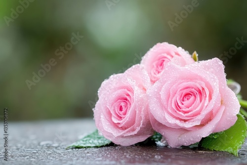 © danadesa, Obraz premium Delicate pink roses with water droplets (1)