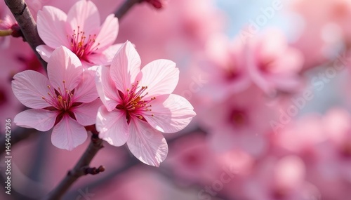 Fototapeta premium Delicate pink sakura blossoms, full bloom, intricate pattern, pretty,...