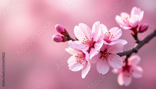 © anulak, Obraz premium Delicate pink sakura blossoms, full bloom, repeating pattern , design, spring background