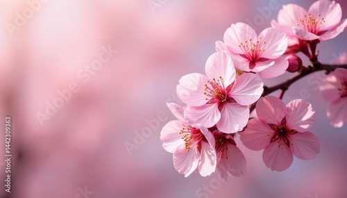 Obraz premium Delicate pink sakura blossoms, full bloom, soft petals , gentle, floral