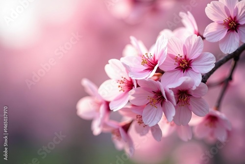 Obraz premium Delicate pink sakura blossoms, full bloom, soft petals , nature, wallpaper