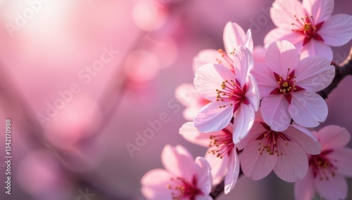 © Kraengkrai, Fototapeta premium Delicate pink sakura blossoms, full bloom, soft petals , pink flower, flower, cherry blossom