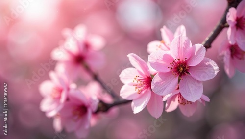 Fototapeta premium Delicate pink sakura blossoms in full bloom, forming a repeating pattern , nature, print
