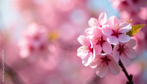 Fototapeta premium Delicate pink sakura blossoms in full bloom, forming a repeating pattern , sakura, soft
