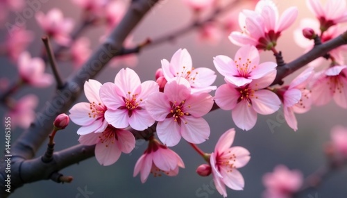 Obraz premium Delicate pink sakura blossoms, intricate branch pattern , sakura branch, floral, flower