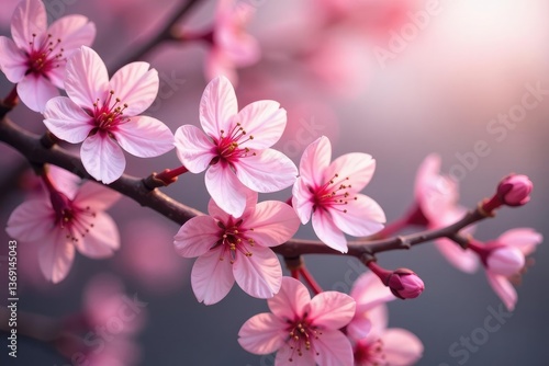 Fototapeta premium Delicate pink sakura blossoms, intricate branch pattern, spring, sakura, texture