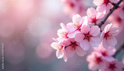 Fototapeta premium Delicate pink sakura blossoms, soft petals, gentle branch pattern, gentle,...