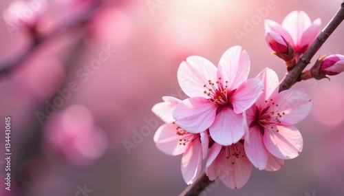 © Wachiraporn, Obraz premium Delicate pink sakura blossoms, soft petals, gentle branches , flowers, pink background