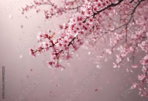 Fototapeta premium Delicate pink sakura petals drift down, soft focus background, spring bloom ,...